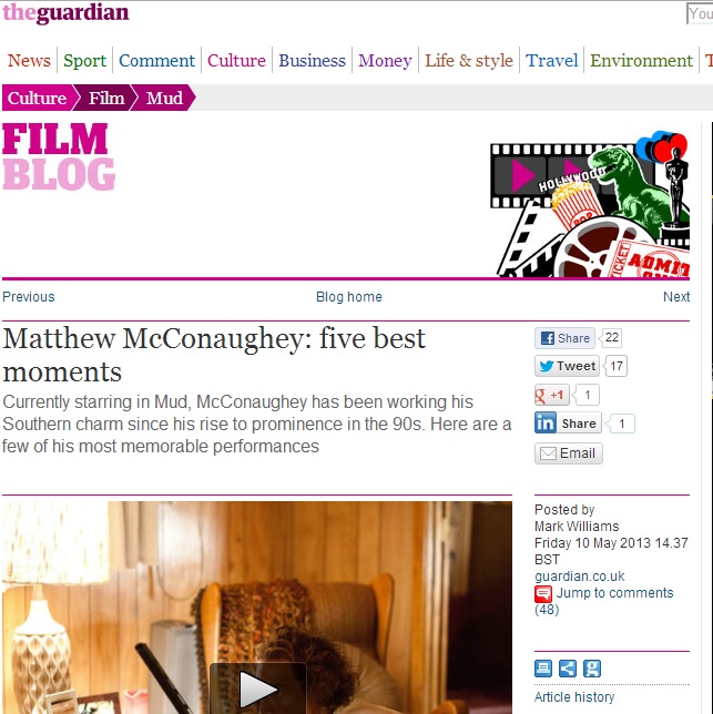 http://www.guardian.co.uk/film/filmblog/2013/may/10/matthew-mcconaughey-five-best-moments